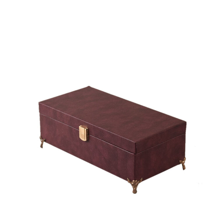 باکس چرمی، یک گزینه عالی برای کسانی است که به دکوراسیون شیک و لوکس اهمیت می‌دهند. این باکس با طراحی ساده و جذاب، ساخته‌شده از چرم با کیفیت و مقاوم است که علاوه بر زیبایی، از دوام بالایی برخوردار است. با توجه به ظاهر خاص و مجلل آن، می‌تواند به‌عنوان یک انتخاب مناسب برای نگهداری زیورآلات، لوازم شخصی، یا حتی هدایای خاص باشد. پایه‌های طلایی و درب قفل‌دار این باکس، جلوه‌ای بی‌نظیر به آن می‌بخشد و فضایی لوکس و مرتب برای شما فراهم می‌آورد.