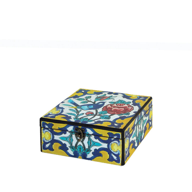 جعبه دکوپاژ(طرح کاشی گل‌ و مرغ زردِ لیمویی) کد L86