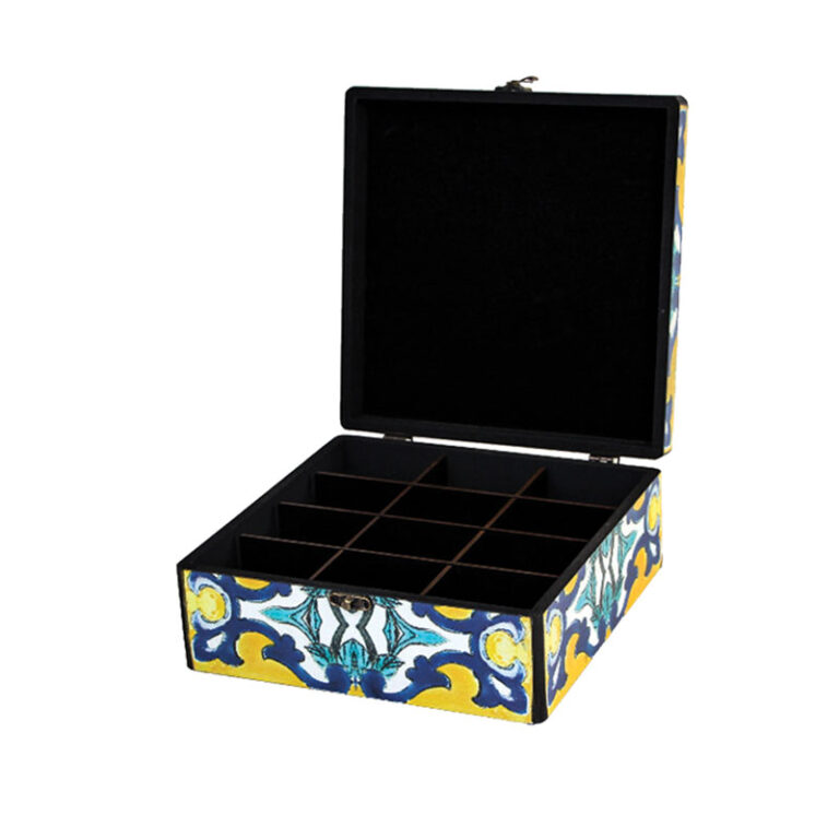 این جعبه علاوه بر کاربری روزمره، یک عنصر دکوراتیو ارزشمند است و روی میز پذیرایی، ویترین خانه یا به عنوان هدیه، جلوه‌ای چشمگیر و اصیل ایجاد می‌کند.