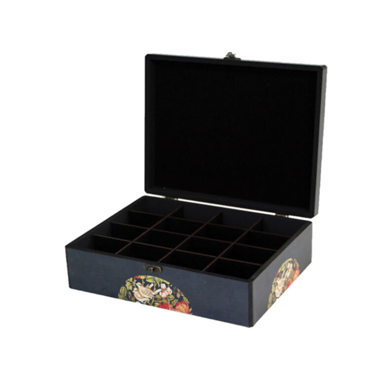 میباشد. قرار گرفتن این طرح بر بدنه جعبه، آن را به قطعهای هنری تبدیل کرده که حضورش در هر فضا حس آرامش، زیبایی و اصالت ایجاد میکند.
