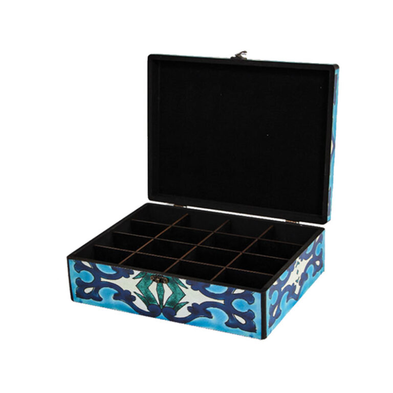 این جعبه نه تنها برای چیدمان و نگهداری کاربردی است، بلکه مانند یک قطعه هنر دستساز، جلوهی خاصی به میز پذیرایی، کتابخانه یا ویترین میبخشد.
