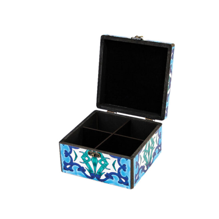 ویژگیها و مشخصات جعبه طرح گل و پرنده ایزنیک آبی: