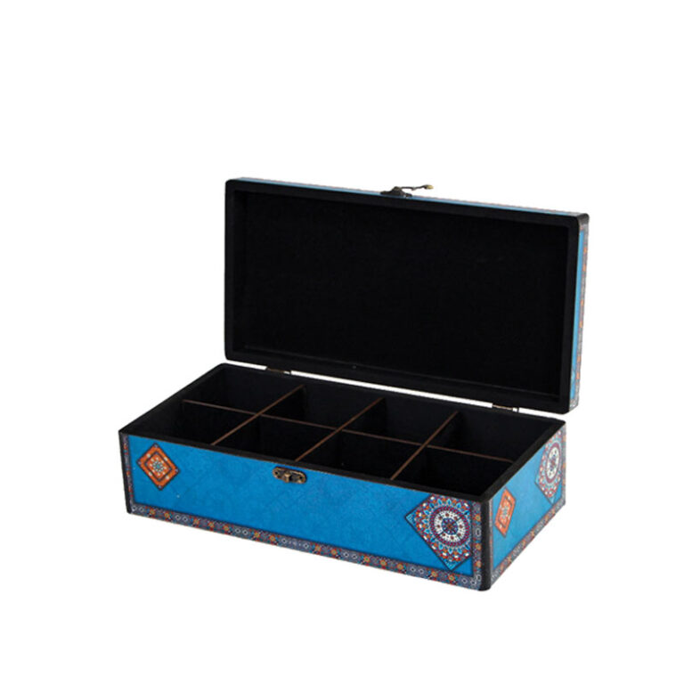 این جعبه علاوه بر زیبایی، کاربردی نیز هست و برای نگهداری چای، دمنوش، خشکبار یا زیورآلات بسیار مناسب میباشد.