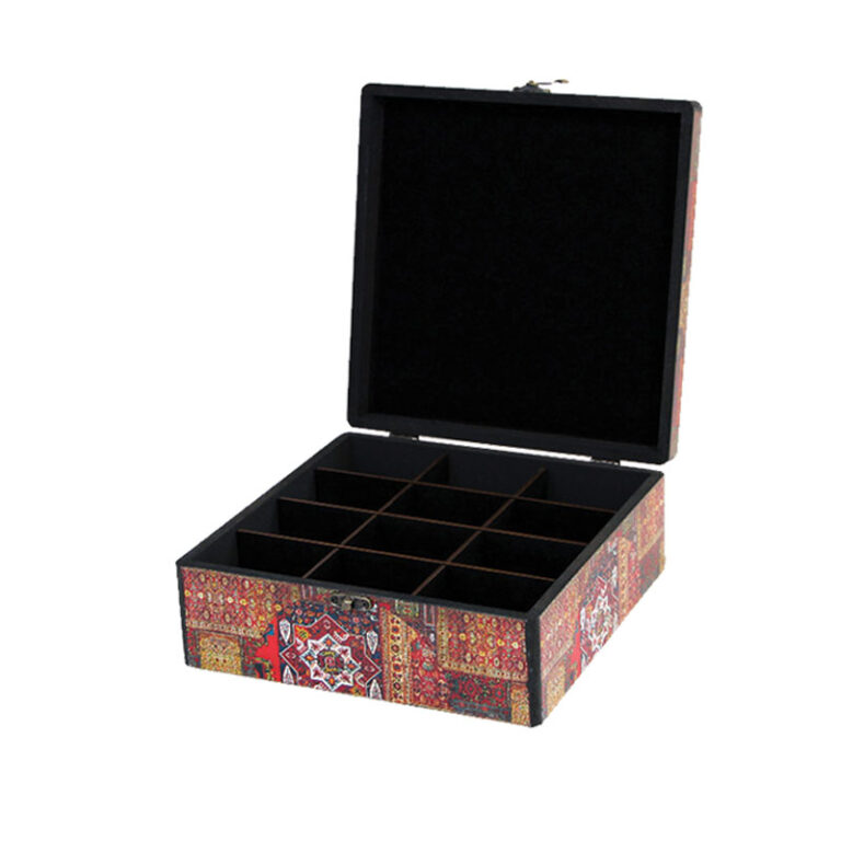 این جعبه حس و حال فرش ایرانی را به یک ابزار کاربردی روزمره تبدیل میکند؛ هارمونی گرم رنگها با اغلب فضاهای کلاسیک، ایرانی–مدرن و مینیمال گرم ست میشود، تقسیمبندی ۱۲خانه همزمان نیاز پذیرایی تمیز و نظمدهی ریزاقلام را برطرف میکند، بدنه MDF و روکش بادوام برای استفاده روزانه در منزل، کافه، هتل و دفتر کار مناسب است و در نهایت، یک هدیه ماندگار و کلکسیونی برای دوستداران صنایعدستی بهحساب میآید.
