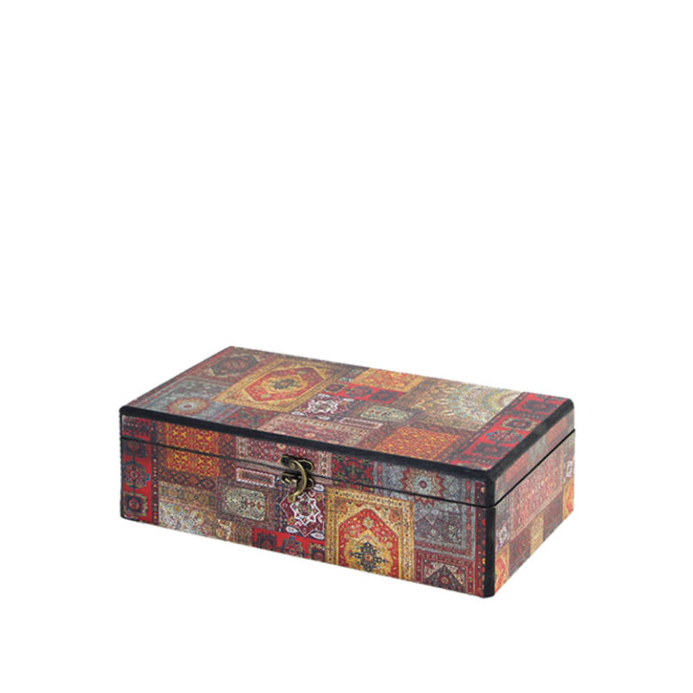 جعبه دکوپاژ (طرح گلیمِ پچ‌وُرکِ قشقاییِ رنگین) کد Z106